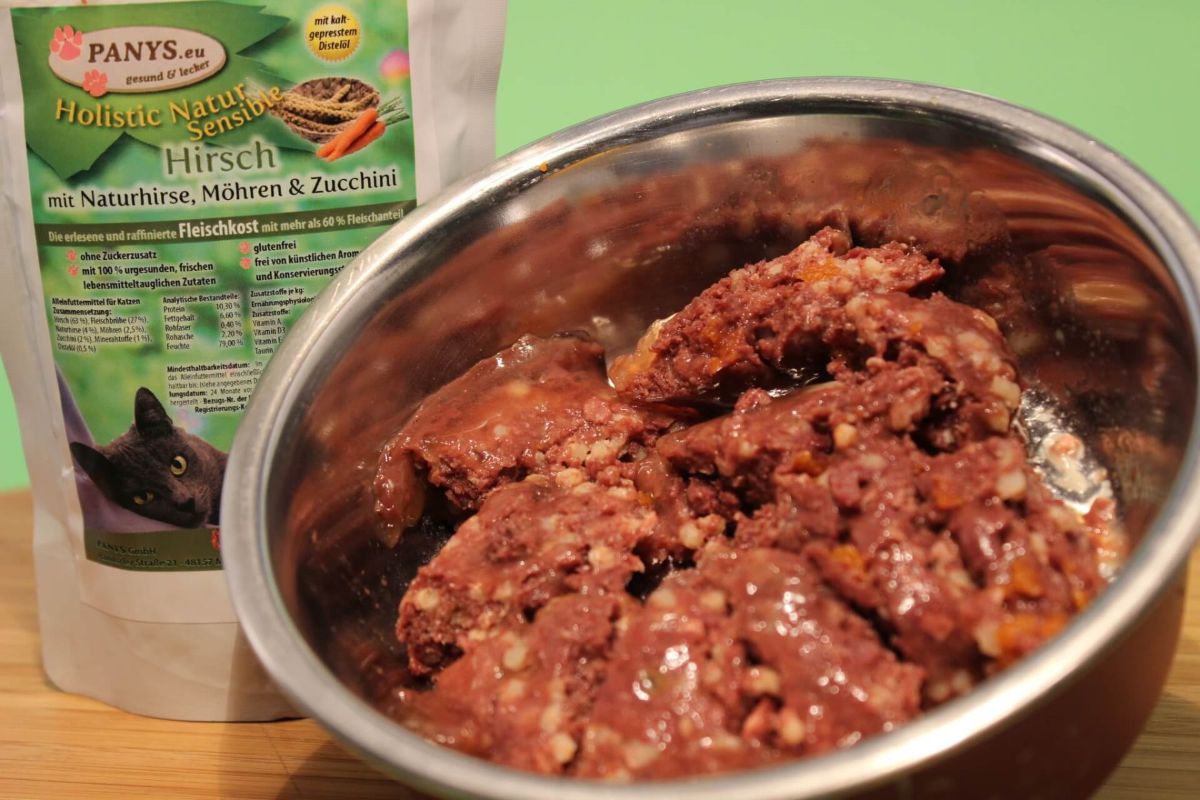 wird im schonenden Garverfahren hergestellt. Mit einem Fleischanteil von über 60,0 % und einer Fleischbrühe, die ausschließlich aus den jeweiligen Fleischsorten der Inhaltsangabe besteht, bekommt die Katze eine artgerechte Mischung. Mit insgesamt 12 reinen Fleisch und glutenfreien Sorten bieten wir auch Magen- Darmsensiblen Katzen eine ideale Mahlzeit. PANYS Pouchbeutel sind sehr beliebt weil man sie einfach aufreißen kann und rein ins Näpfchen, fertig. Danach einfach Beutel zusammen rollen und ab in den Müll, so hat man weniger Abfall und vor Allem, keinen lästigen Dosenmüll.