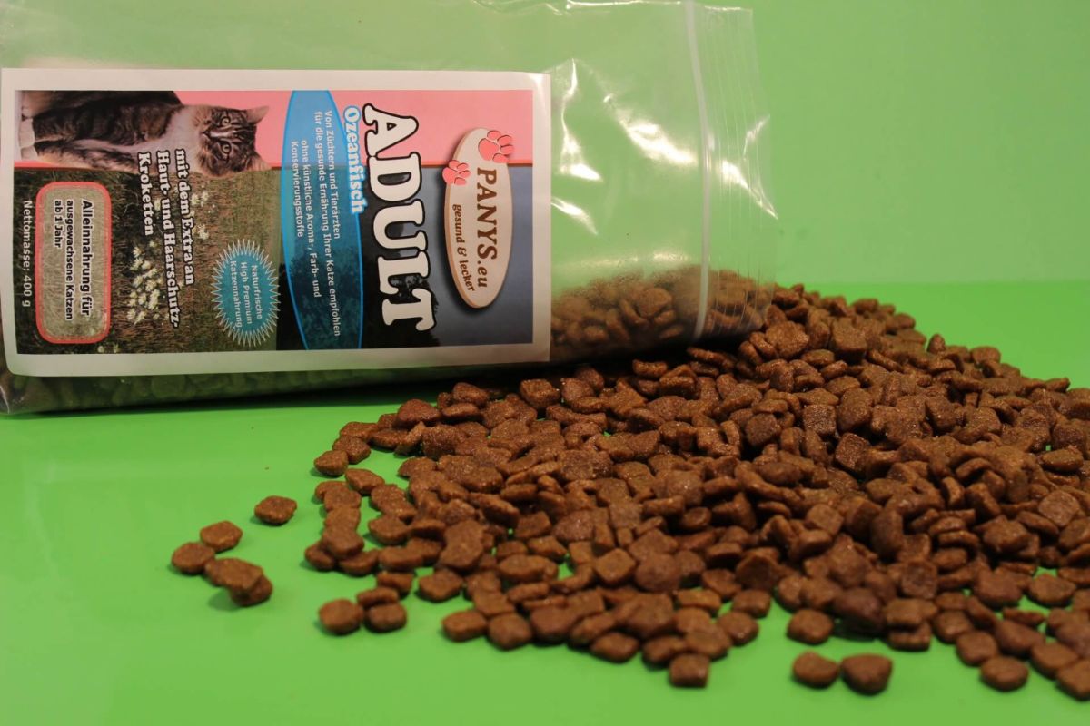 Mit Haut- und Haarschutz-Krokette Alleinnahrung für ausgewachsene Katzen ab 1 Jahr mit dem Extra an Haut- und Haarschutz-Kroketten. Geringe Haarballen-bildung und optimale Ausscheidung bereits entstandener Haarballen mit Hilfe von Pflanzenfasern. Von Züchtern und Tierärzten empfohlen. PANYS Trockennahrung ist ernährungs-physiologisch ausgewogen und enthält alle wichtigen Inhaltsstoffe, die Katzen für ein aktives Leben benötigen.  Vorteile des PANYS Trockenfutters:     Deutsche Qualität.     Ohne zugesetzte künstl. Aroma- und Farbstoffe     High-Premium-Qualität     Pre-Probiotika - FOS (Fructo-Oligosaccharide)     Auch für ernährungssensible Katzen.     Zu 100 % ohne Gentechnologie.     Zu 100 % ohne Tierversuche.